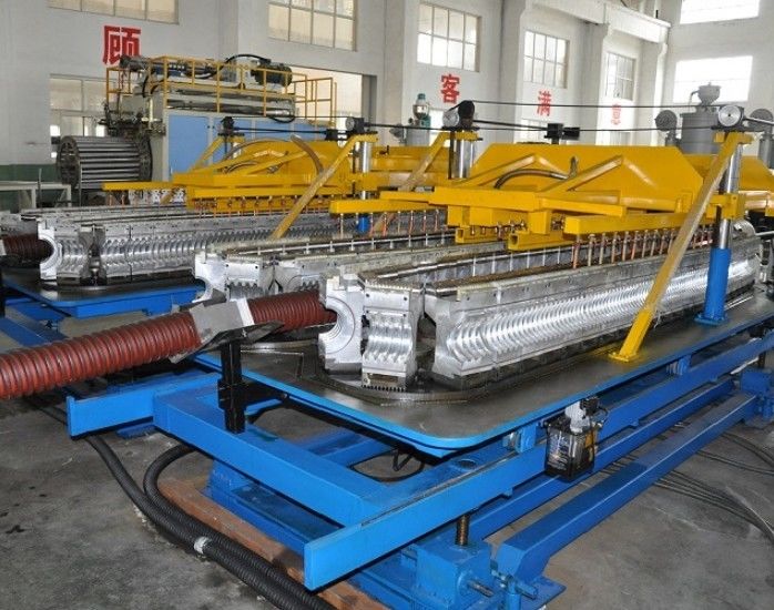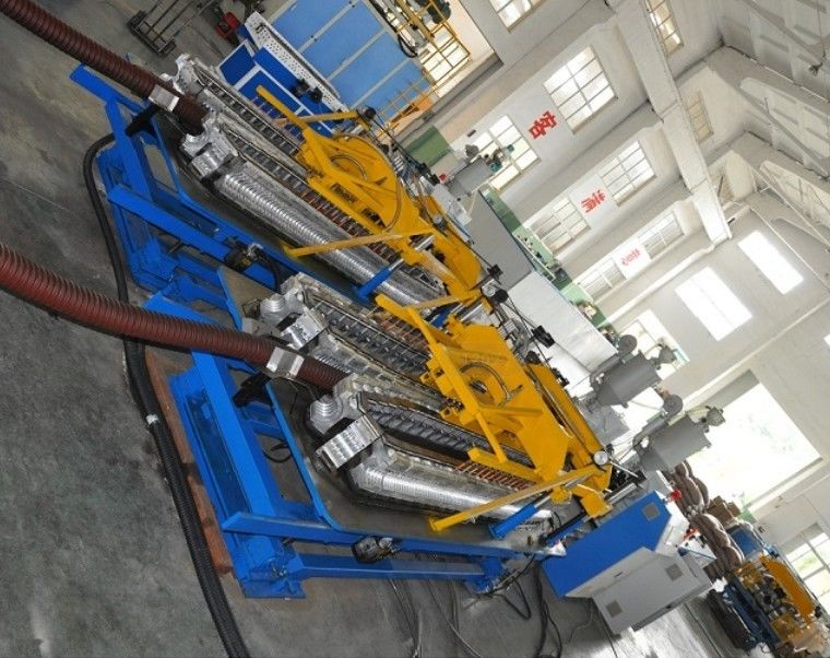 สกรูและบาร์เรลใช้เครื่องอัดรีดแบบสกรูเดี่ยวที่ออกแบบมาเป็นพิเศษพร้อมโครงสร้างที่เป็นเอกลักษณ์ซึ่งสามารถให้ผลผลิตสูงใช้พลังงานต่ำและทำให้เป็นพลาสติกได้ดีมีโครงสร้างแม่พิมพ์ที่เหมาะสมและเครื่องอัดรีดสองเครื่องให้วัสดุสำหรับหมุนท่อโปรไฟล์เป็นท่อเกลียว