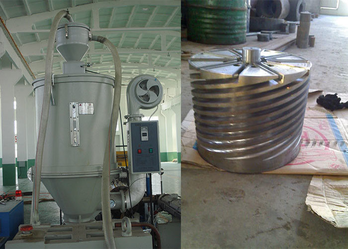 วัตถุดิบ + ชุดต้นแบบ→การผสม→การป้อนสูญญากาศ→ความแห้งของวัสดุ→เครื่องอัดรีดแบบสกรูเดี่ยว→แม่พิมพ์อัดขึ้นรูปตะกร้า→เครื่องสอบเทียบ→ถังสอบเทียบสูญญากาศสเปรย์→ถังน้ำหล่อเย็นแบบสเปรย์→สายพานลาก→เครื่องอัดรีดกาวสกรูเดี่ยว→ม้วน→ลูกกลิ้งม้วน การขึ้นรูป→เครื่องทำน้ำเย็น→ชั้นวางท่อ→การตรวจสอบและบรรจุผลิตภัณฑ์สำเร็จรูป