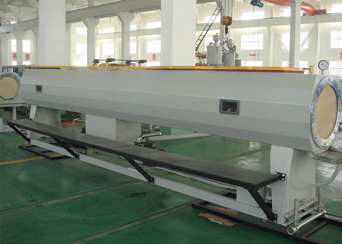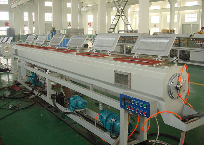 สายการผลิตท่อพลาสติก PE ส่วนใหญ่จะใช้ในการผลิตท่อน้ำประปาและท่อระบายน้ำในด้านการเกษตรและการก่อสร้างสายเคเบิลเป็นต้นสายการผลิตนี้ส่วนใหญ่ประกอบด้วยเครื่องอัดรีดแบบสกรูเดี่ยว ถังสอบเทียบสูญญากาศ, ถังระบายความร้อนแบบฉีดพ่น, เครื่องลาก, เครื่องตัด, stacker เป็นต้น
