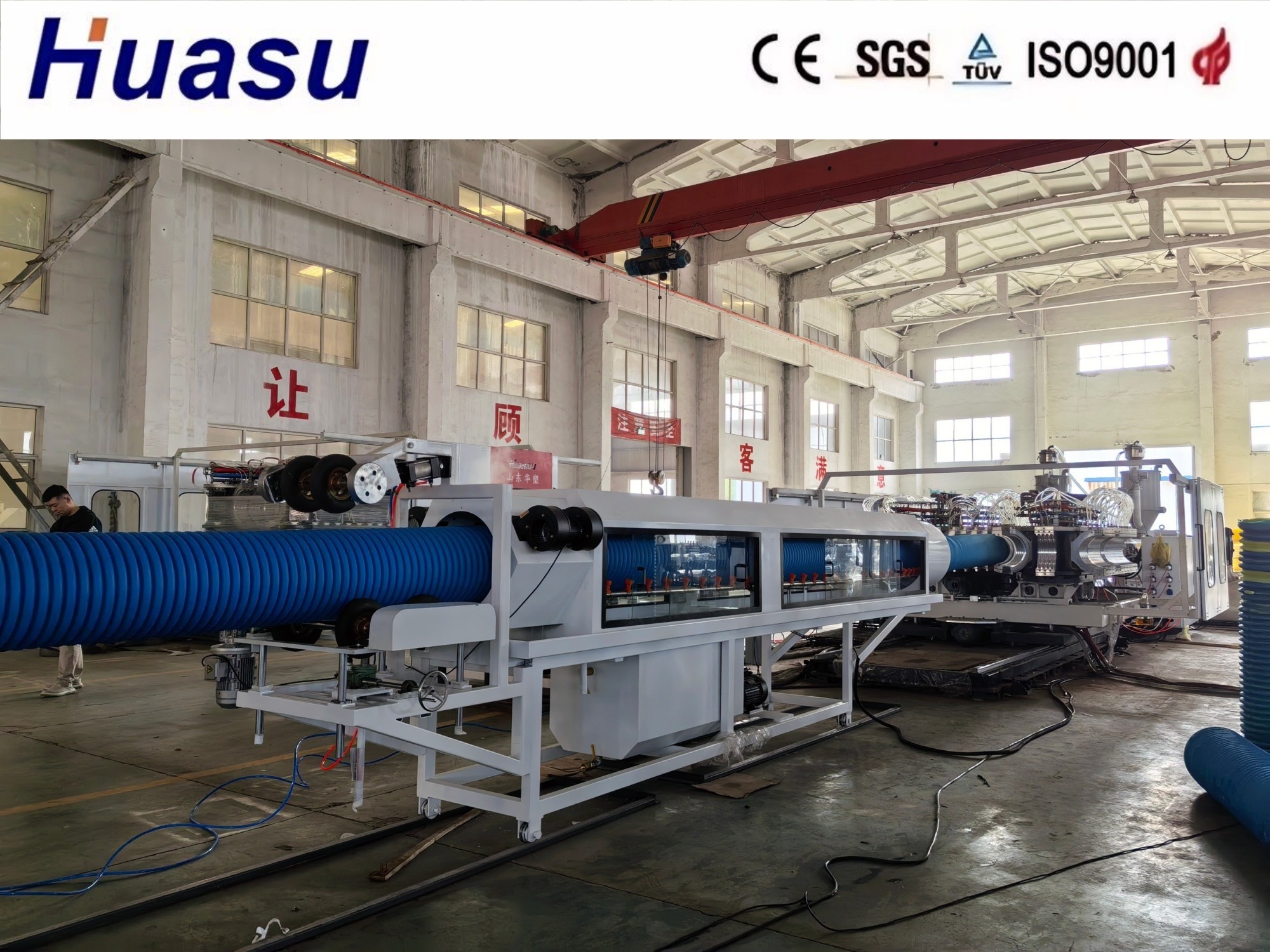 สายการผลิตท่อ corrugated รุ่นล่าสุดจาก Shandong HUASU แสดงถึงความก้าวหน้าทางเทคโนโลยีที่สําคัญเมื่อเทียบกับรุ่นก่อนหน้านี้ระบบรุ่นที่ 3 นี้ส่งผลให้มีการปรับปรุง 20-40% ในผลิต extruder และความเร็วการผลิตท่อ.
